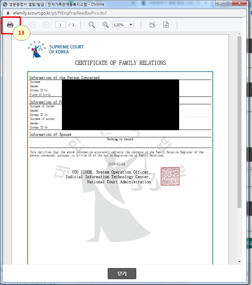 자녀의 증명서를 발급 받는것이기에 부,모 중 한명의 정보를 입력하면 된다.