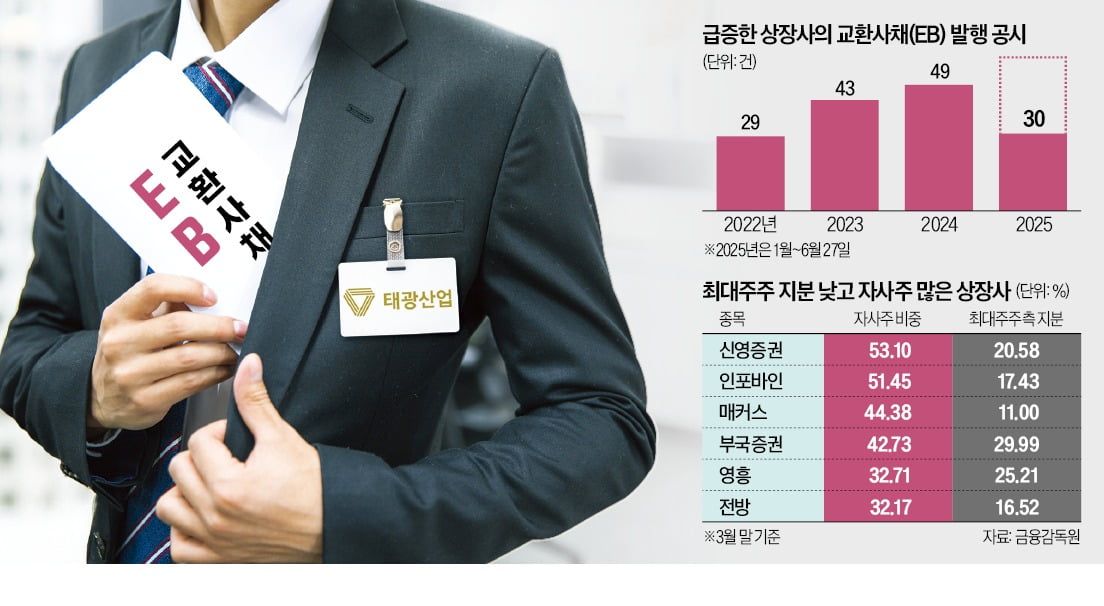 최근 자사주 소각 의무화 정책이 추진되면서 기업들이 자사주를 소각하지 않고 EB 발행을 통해 현금을 조달하거나 경영권 방어, 지배력 강화에 활용하는 사례가 급증하고 있다.
